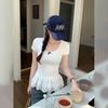 Summer pure cotton Lace splicing t shirt for Women solid O-neck short sleeve T-shirts Lotus leaf Slim Elastic Skinny white Tops — tüm dünyaya ücretsiz teslimat ile online ürün satın alın!
