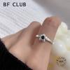 خواتم كورية معدنية على شكل وردة سوداء للنساء والفتيات خواتم إصبع السبابة القابلة للتعديل من الزركون الفاخر للحفلات