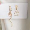 1 Pair Moon Star Rabbit Earring Women's Cat Fish Bone Crystal Pearl Asymmetric Earring Party Jewelry YSX