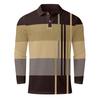 The design features lapels, long sleeves, and a trendy color-blocking print that exudes fashion and charm.