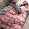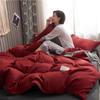 2024 new solid color double polished bed four-piece set Japanese bed sheet quilt cover mattress student kit multi-specification