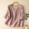 Autumn 2024 Women's Embroidered Cotton-Linen T-Shirt: Loose Fit, Belly-Covering, Slim Round Neck, Three-Quarter Sleeves. في متجر Joom الإلكتروني مع تقييمات حقيقية من قبل المستخدمين. قم بشراء Autumn 2024 Women's Embroidered Cotton-Linen T-Shirt: Loose Fit, Belly-Covering, Slim Round Neck, Three-Quarter Sleeves. بسعر مغري