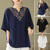 المرأة عارضة قميص الخامس الرقبة نصف كم البلوز قمم التطريز نمط الأزهار فضفاضة تناسب بلوزة مريحة