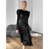 2023 Autumn Retro Puff Sleeve Mid-Length Little Black Dress with Palace Collar