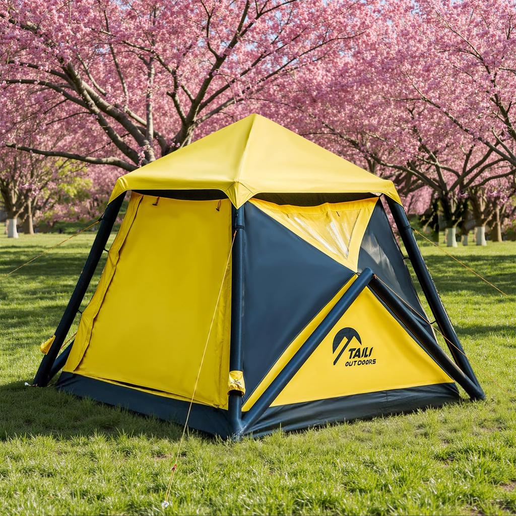 خيمة قبة TAILI لشخصين قابلة للنفخ للتخييم والتجول مع مساحة كبيرة للتخزين سهلة الإعداد أصفر أشخاص، خيمة، قبة، مضخة، خفيفة الوزن، مساحة، بالغين،