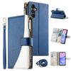 For Samsung Galaxy A05s 4G Case Zipper Wallet Color Splicing Leather Flip Phone Cover with Straps