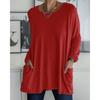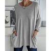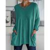 تي شيرت نسائي كاجوال للربيع والصيف بجيب سترة علوية برقبة دائرية وقميص بأكمام طويلة، تي شيرت عصري فضفاض بلون سادة مقاس كبير