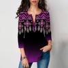 New Trend Women's Fashion Loose Casual 3/4 Sleeved Ethnic Style Floral Printed Folded V- Neck Button Shirt & Blouses Tunic Tops
