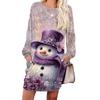 Women's Snowflake Print Fashionable Long-sleeved Round-neck Pocket Dress