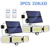 1/2/4PC Solar Lights Outdoor with 224 LED Motion Sensor Light Remote 3 Mode Waterproof 3 Head Solar Flood Lights for Yard Garden