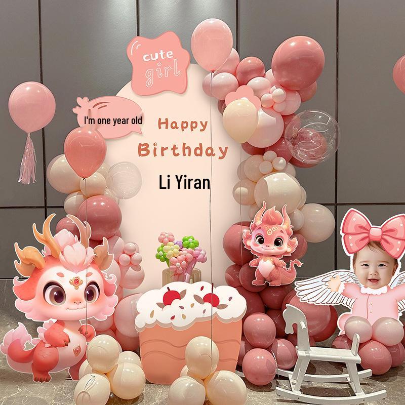 Dragon Baby Balloons & KT Board Backdrop for Girl's First Birthday Party