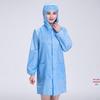 Unisex Anti-Static Dustproof Lab Coat with Hood - Long Sleeve, Blue/White for Cleanroom & Workshop.