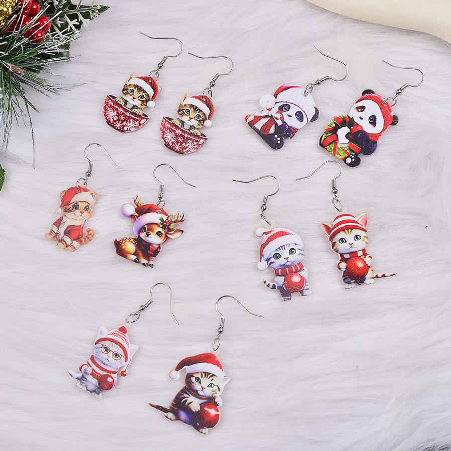 Festive Kitten & Panda Christmas Ball Earrings – Cute and Creative Holiday Jewelry