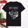 Men's Vintage Rock Band Graphic T-Shirt Black Distressed Lettering Short Sleeve Tee Deep Purple Retro Logos Breathable Polyester