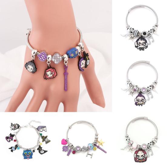 Silver-Purple Fantasy Aesthetic: Showcasing a dramatic silver-purple color scheme, this bracelet blends gothic fantasy elements with pop style expression. Detailed enameled glamor highlights signature motifs like the demon cat Moro and blade guardian Astra, creating a visually striking accessory.
