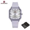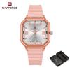 NAVIFORCE Original Women Square Watch Quartz Luminous Pointer Simple Lightweight Silicone Strap Waterproof Women Lady Casual Fashion Watch NF6108