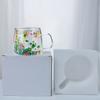Colorful Dried Flower Glass Mug - Decorative Clear Coffee/Tea Cup with Embedded Florals