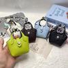 محفظة نقود صغيرة على شكل زلابية مع ميدالية مفاتيح وإبزيم أمان وحزام معصم قابل للفصل من جلد صناعي مقاوم للماء حقيبة مدمجة حامل مفاتيح