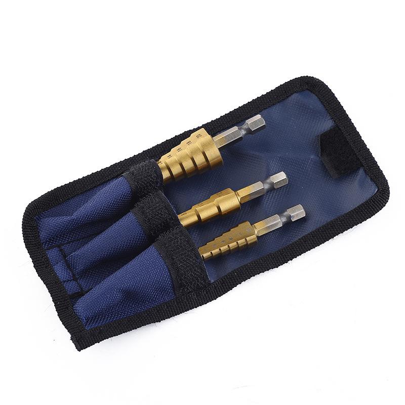 3Pcs/set Hexagonal shank straight groove step drill, titanium-plated pagoda drill, reaming step drill 4-12 4-20 4-32 cloth bag