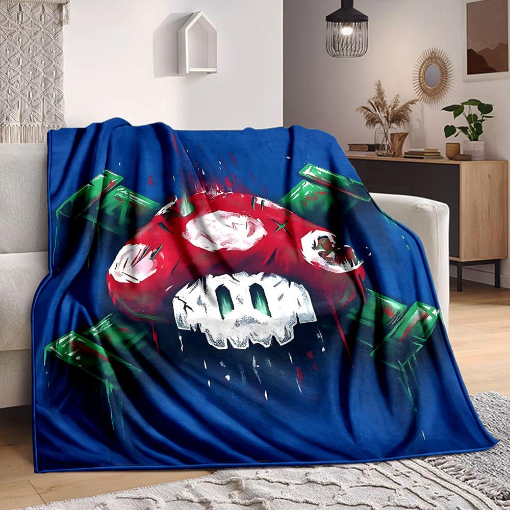 1pc Mario Mushroom Cozy Print Blanket Lightweight Warm Flannel Throw Blanket For Sofa, Bed, Living Room