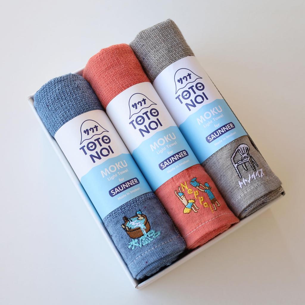 Gift Boxed Sauna MOKU <60299-90> Face Towels, Medium Size, 3-Piece Gift Set: Cold Bath (Blue), Heat Wave (Mandarin), and Totonoiisu (Gray)