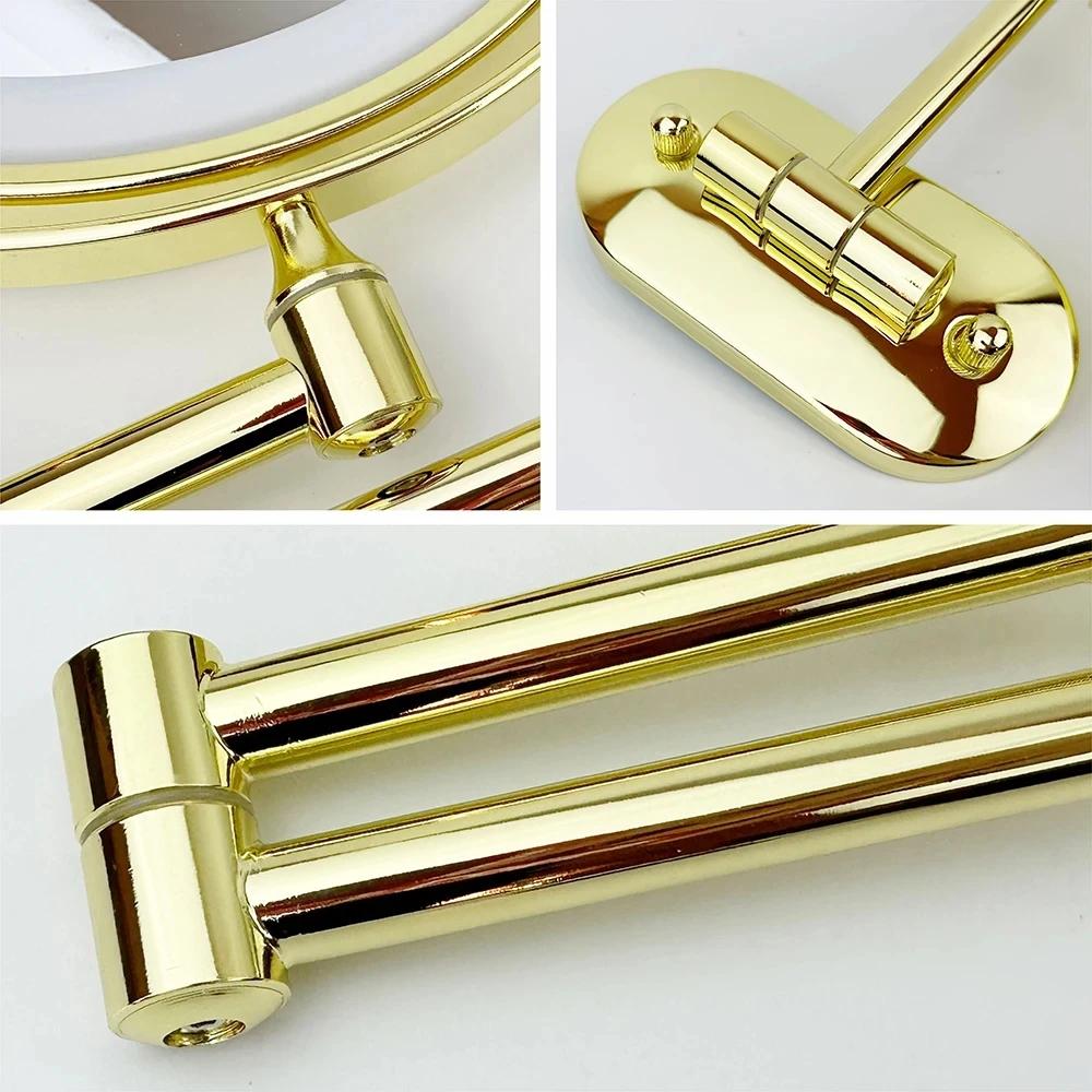 8 Inch Gold Wall Mounted Makeup LED Mirror 3X-10X Magnifying USB Charing Double Side Bathroom Smart 3 color Cosmetic Mirror