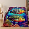 Dream Underwater World Sea Dolphin Turtle Coral Art Flannel Blanket,Cozy Soft Throw Blanket for Home Bedroom Bed Sofa Gift Kids