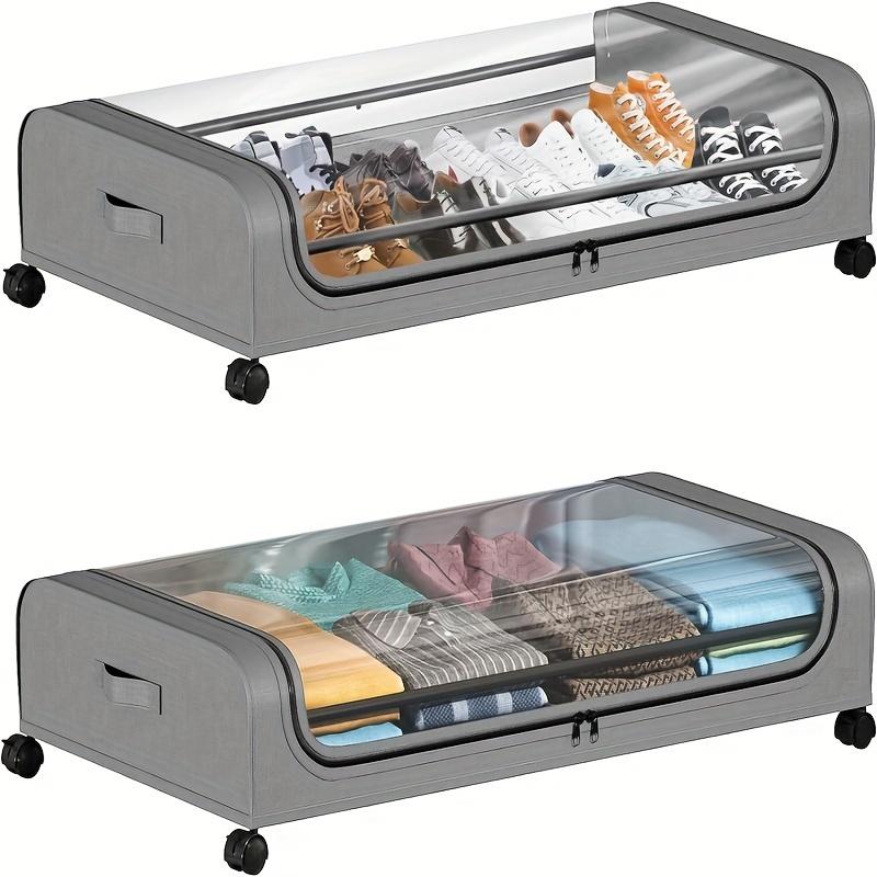Under Bed Storage Organizer - Underbed Bins With Wheels And Lid For Clothes Bedding Shoes Blankets Books Toys Home Organization