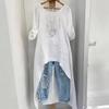 Women's Linen Irregular Long Top - Round Neck, Loose Fit, High-Low Hem, Versatile Fashion Shirt