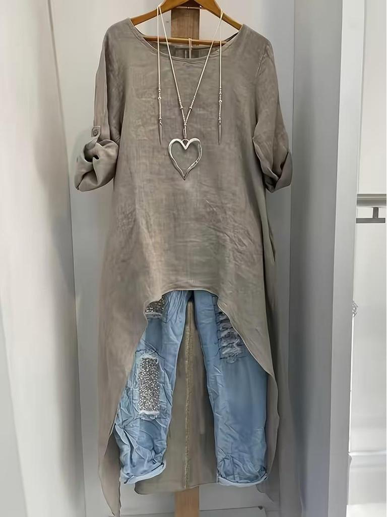 Women's Linen Irregular Long Top - Round Neck, Loose Fit, High-Low Hem, Versatile Fashion Shirt في متجر Joom الإلكتروني مع تقييمات حقيقية من قبل المستخدمين. قم بشراء Women's Linen Irregular Long Top - Round Neck, Loose Fit, High-Low Hem, Versatile Fashion Shirt بسعر مغري