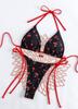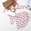 Cherry Print Lace-up Color Block Bikini Thong Set