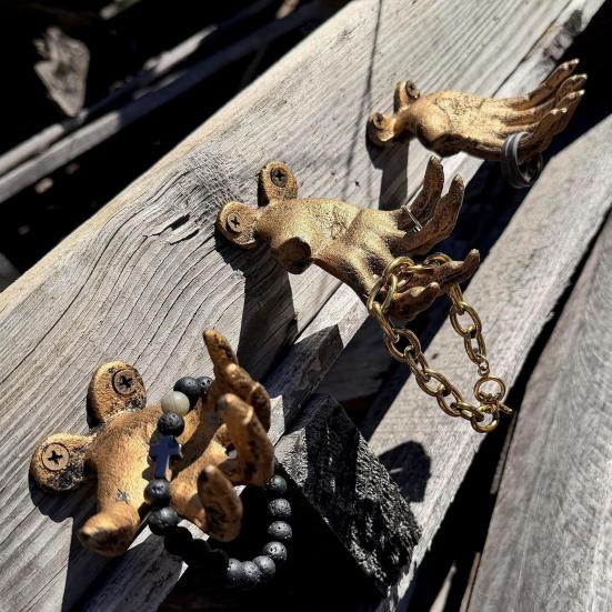 Creepy Hand Wall Hook Metal Distressed Finish Hook Gothic Hand Statue Tealight Candle Holder Hook for Jewelry Rings Entryway Bedroom Indoor Decor