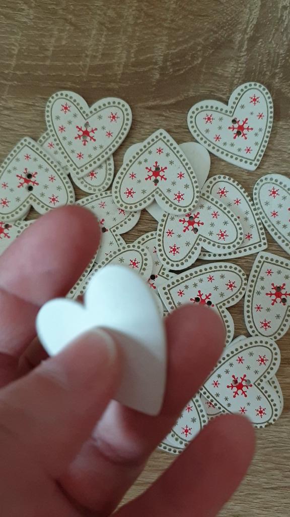 Nejlepší srdíčkové knoflíky. Super kvalita i tisk, velké, krásné na Vánoce. Používám jako křídla andílků.