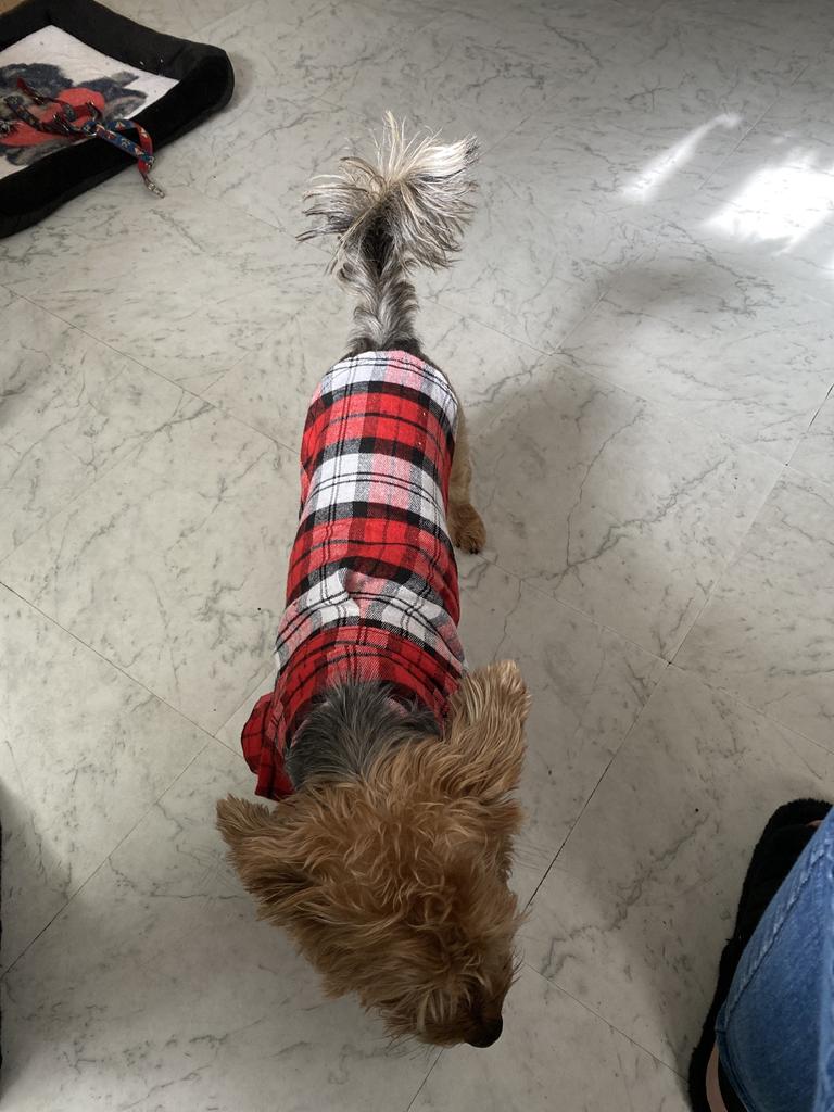 Je to třetí, co jsem si koupila, moc se mi líbí na mých sedm kilo yorsay, velikost XL mi sedí moc dobře.