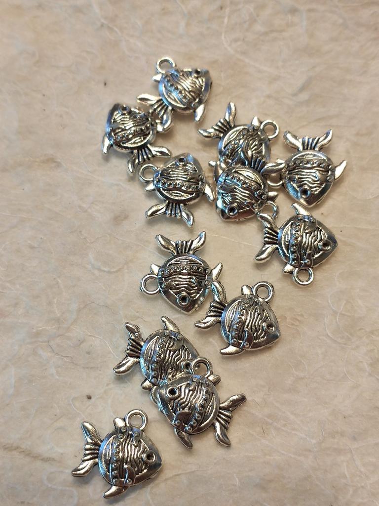 12 kusů kouzla tropické ryby, mořské ryby, malé ryby 15x14x4mm pro výrobu šperků, řemeslné doplňky B13984