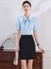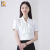 SURWENYUE Letní móda kancelář dámská košile dámská halenka s krátkým rukávem s mašlí výstřih Dámské topy s vlnou