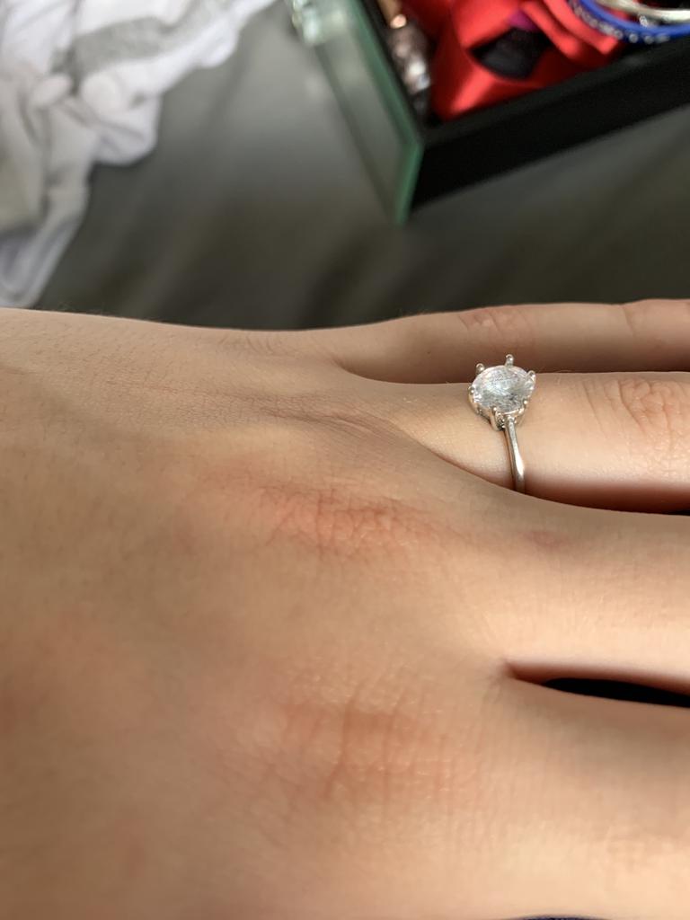 Když tento prsten dorazil, vypadal přesně jako na obrázku, byl nádherný. O týden později všechna barva zmizela. Na mém prstu to zanechalo všechny zelené stopy.