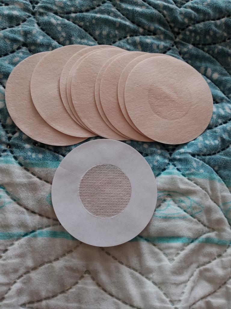 Až moc se to nalepí na kůži,a ta látka je nekvalitní.Jinak není to špatná věc, bradavky opravdu zakryje.