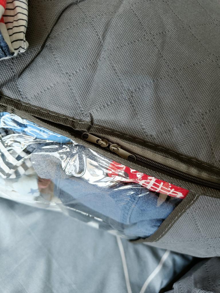 Skvělý organizér na oblečení nebo jiné textilie. Oceňuji oboustranný zip, průhledné okno pro lepší přehlednost co je uvnitř a také uši pro přesun kamkoliv. Velikost je za mě ideální, protože se mi vleze do skříně nebo pod postel. Výborné!👌
