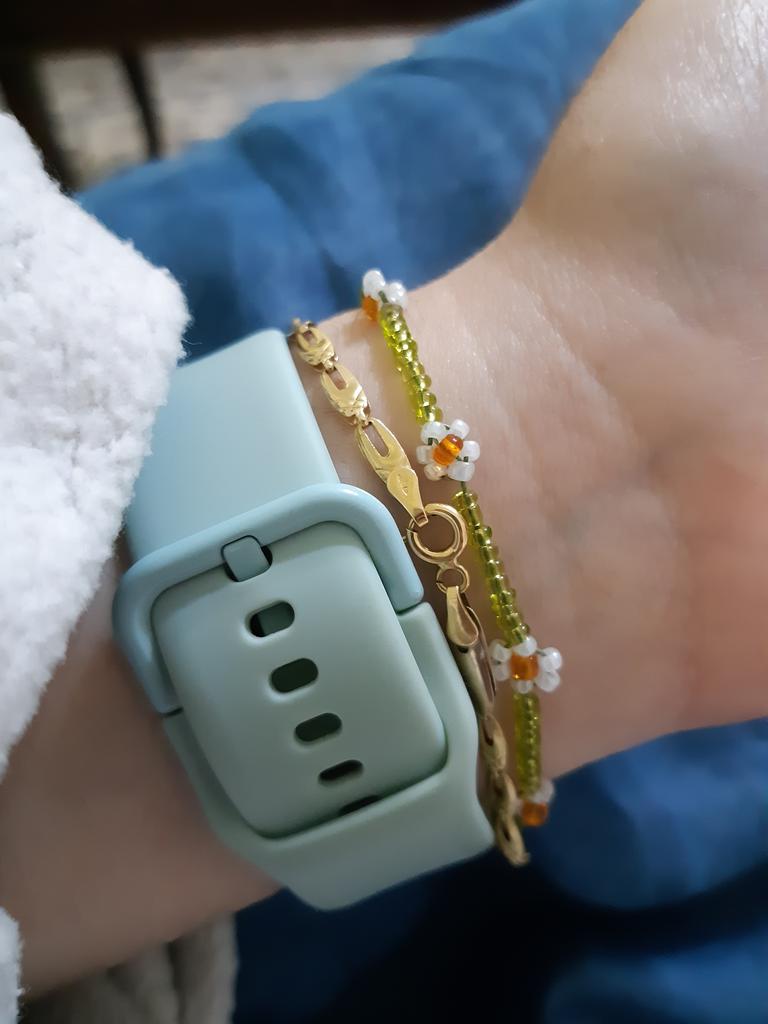 Příjemný materiál, ale pokud máte štíhlé zápěstí, i poslední dírka je moc volná :(