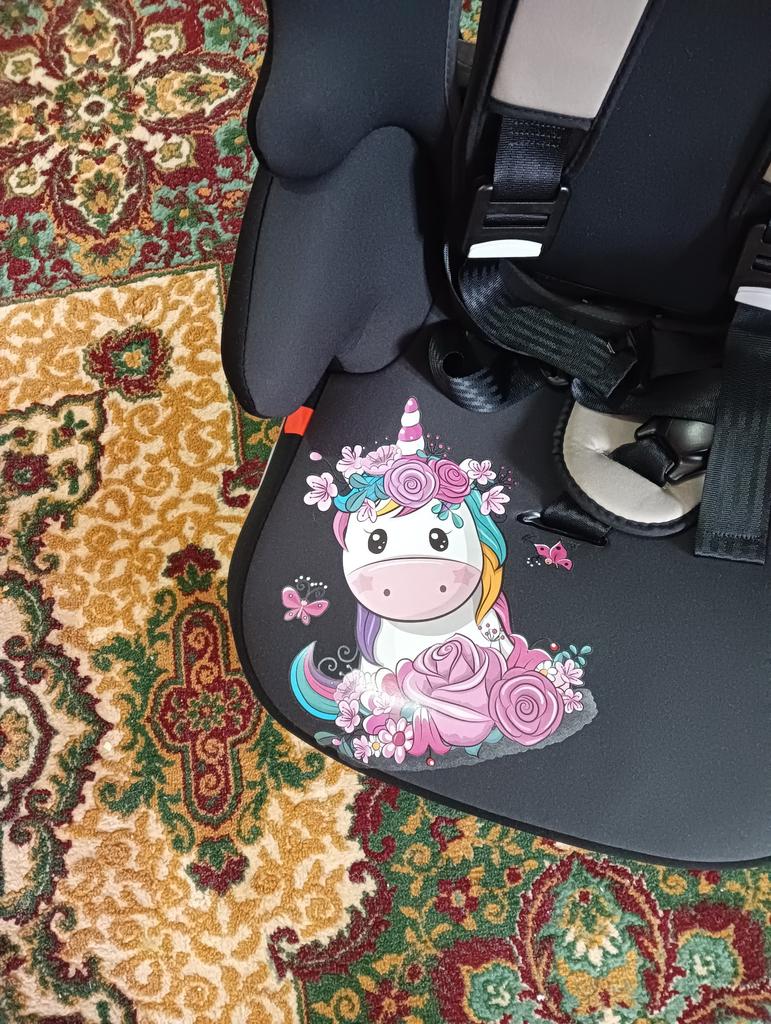 Vypadá skvěle! Snadno se nanáší, použila jsem běžnou žehličku, jen vypnula páru a přežehlila přes hadřík. :D Těmito samolepkami jsem ozdobila šedo/černou autosedačku mé dcery.