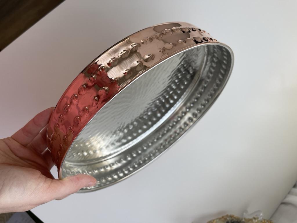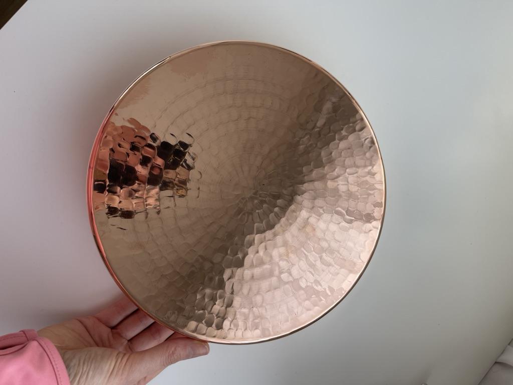 Na stole není nic sladšího než měděné nádobí! Podívejte se na poslední obrázek mého měděného stolu, jak je krásný! Už nějakou dobu sbírám měděné kousky na snídaňové a cestovní aranžmá a je to velmi užitečný kousek na jídelním stole, protože slouží k mnoha věcem, jako jsou sultánky, předkrmy, fattah a téměř vše!!… I byl jsem velmi šťastný, když jsem to našel! Její velikost je přiměřená, není ani malá, ani velká a její barva je také velmi pěkná. Nejlepší je, že měď je v ní tlustá a odolná. Občas se najdou kousky, jejichž měď je tenká a lehká. Nikdy taková není, je velmi odolná a kvalitní. !! Jsem nadšená, že ji mohu použít na jídelní stůl se zbytkem mých měděných kousků! Dorazilo do 10 dnů v dobrém obalu Dílo se mi líbilo a doporučuji!