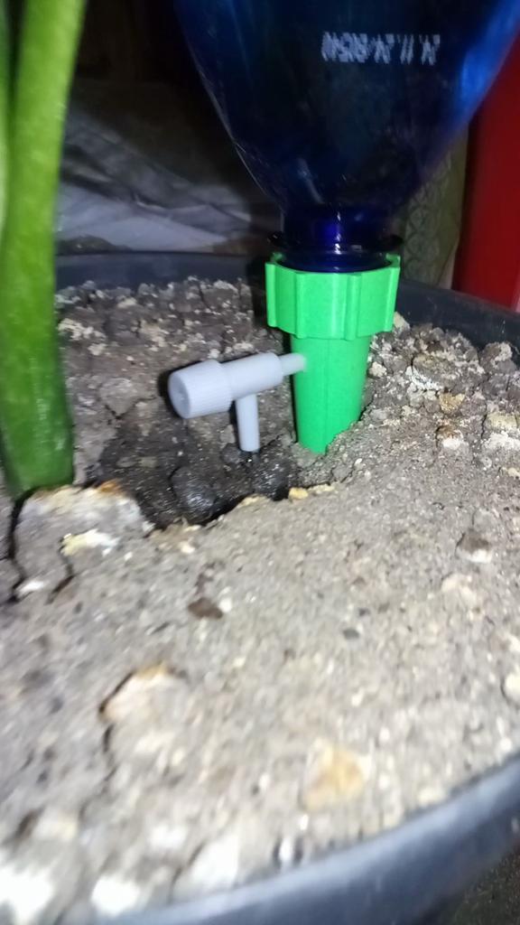 Pasuje na jakoukoliv PET flašku. Pro jednoduché doplňování vody je dobré odříznout dno PETky a závlaha funguje skvěle.