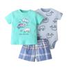 Letní miminko holčička chlapec ležérní krátký rukáv kreslený vzor tisk topy tričko s kraťasy romper oblečení sada