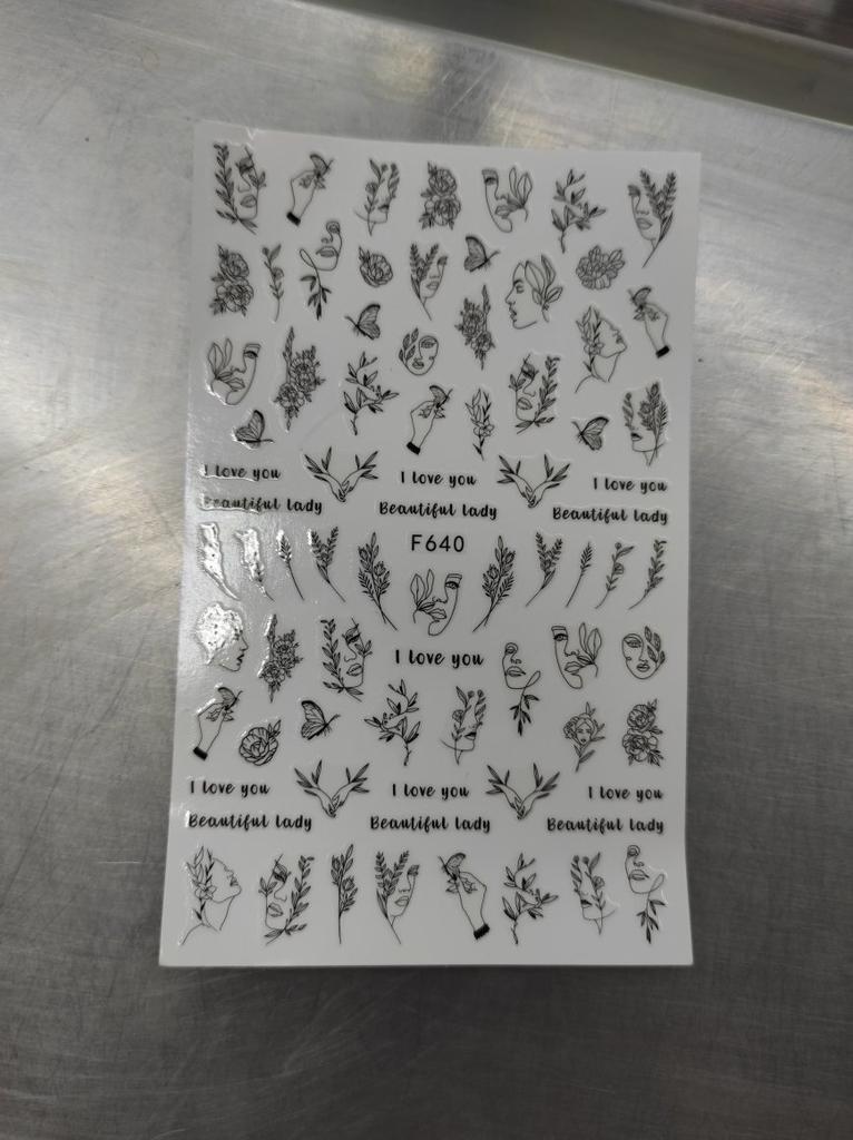 1ks Sexy ženy Listy Květiny Vzor Samolepky na nehty Černobílé Postavy DIY Samolepky na nehty