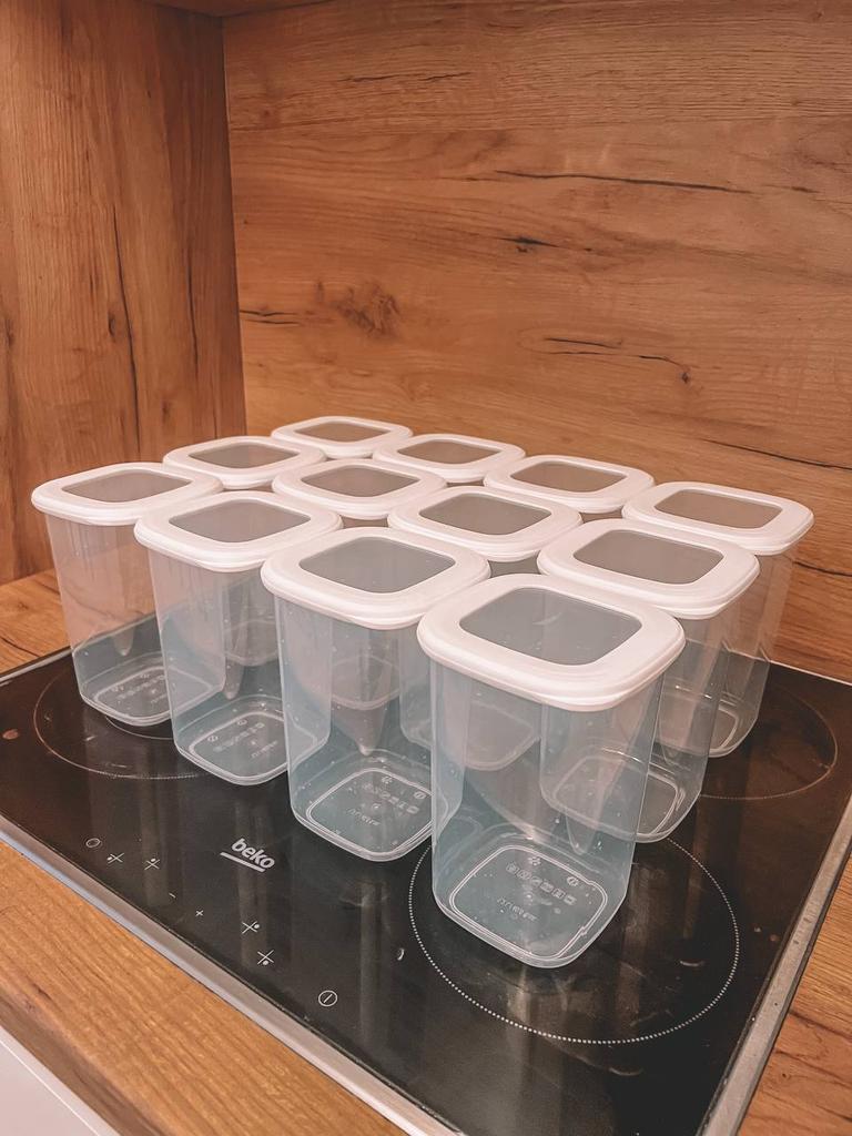 Skvělé nádoby na sypké produkty a další. Transparentní víka jsou zvláštní vymožeností, když jsou nádoby umístěny v zásuvkách. Vypadají malé, ale jsou prostorné (1,2 l). Jsou také vhodné do myčky, což pro nás bylo důležité.. Víčka se pevně zavírají, ale zároveň jsou docela měkká a nevyžadují velké úsilí.. Rozhodně vynikající nákup pro uspořádání pořádku a skladování v kuchyni. Vyhodili jsme všechny vícebarevné a rozmanité tašky, nyní je vše na svém místě a je pohodlné používat.