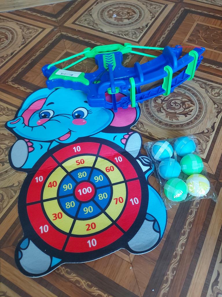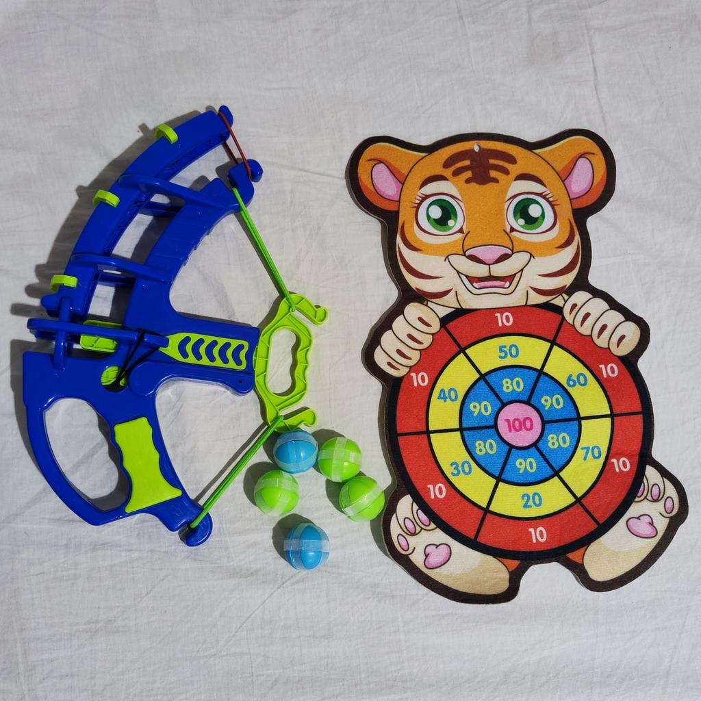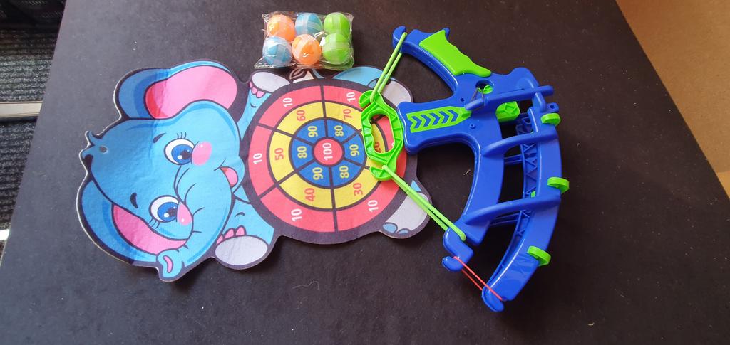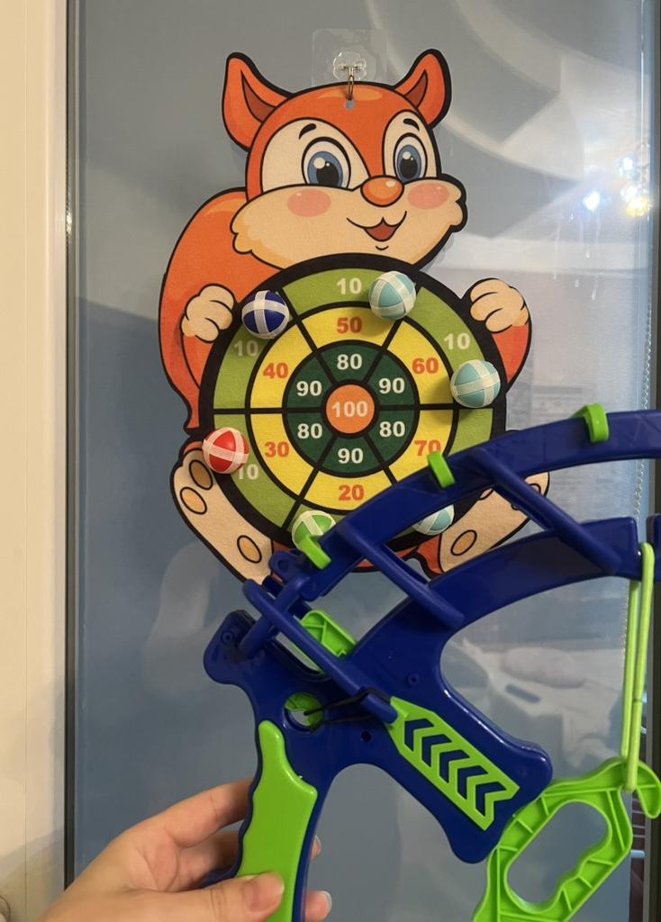 Nádherná herní sada pro trénink přesnosti 🎯 Světlý, roztomilý terč vyrobený z materiálu podobného tenkému, silnému fleecu 🐯 Poměrně pevný luk z kuše a duté plastové koule na suchý zip 🏹 Součástí stavebnice je také kovový háček s lepicí podložkou pro připevnění terče na zeď bez poškození 🤗