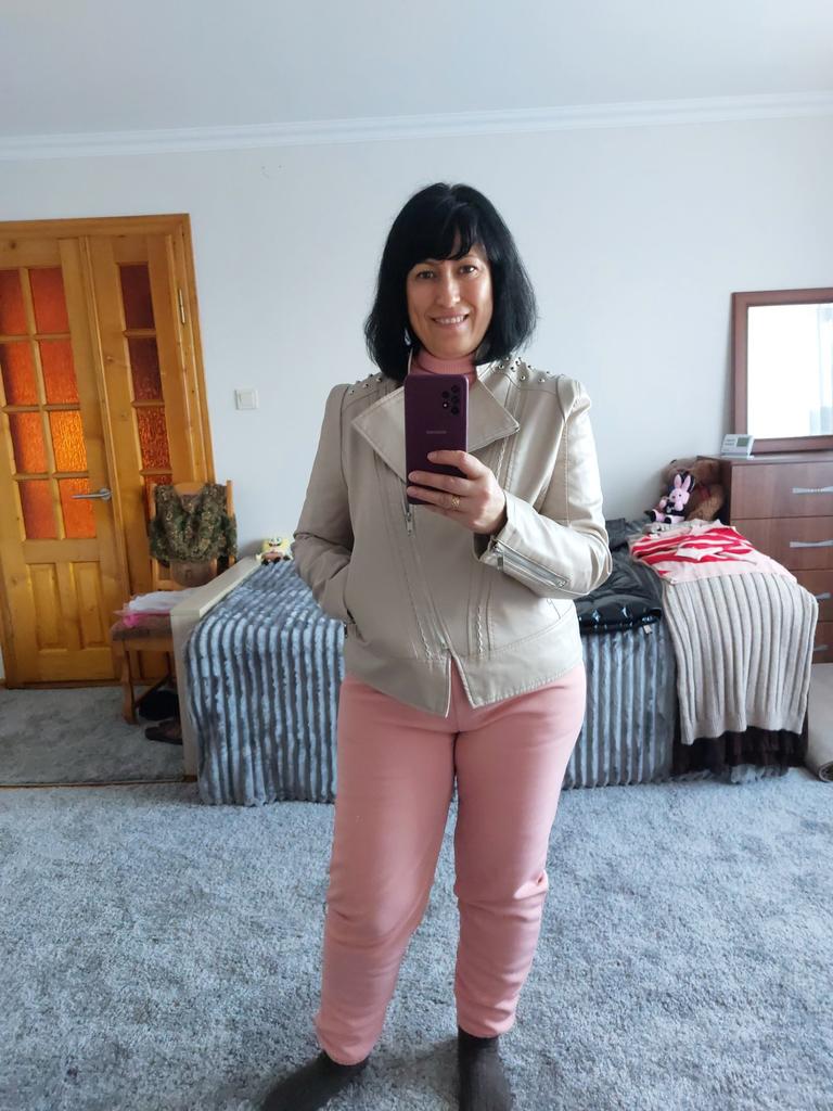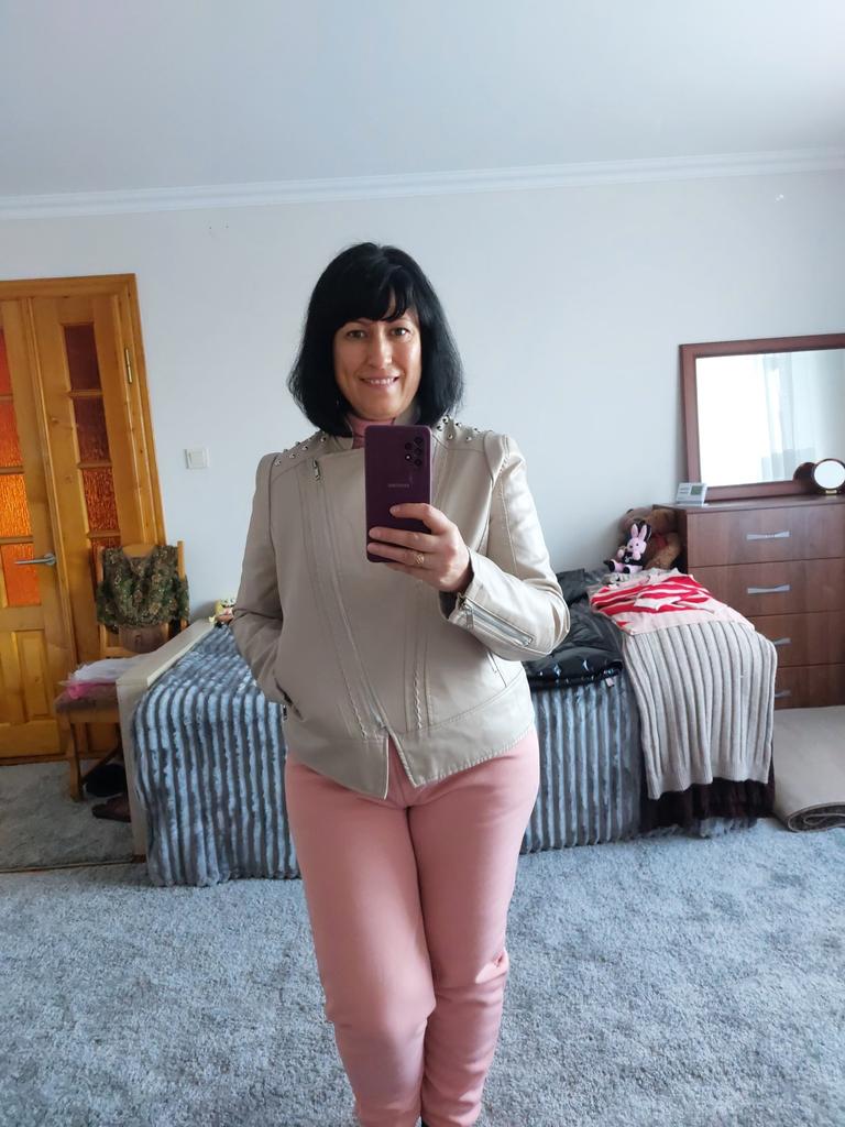 Tato bunda mě tolik přirostla k srdci, je to ta nejlepší bunda, jakou jsem kdy dostal. Náhražka kůže je taková měkká, elastická, podobná přírodní kůži a ta barva je prostě.....jemná, krásná. Velikost XL, sedí jako stvořená přímo pro mě. S výběrem velikosti jsem spoléhal na recenze. Délka a plnost rukávů, délka a šířka saka, no prostě všechno perfektně sedí. Design je krásný. Jsem velmi spokojen. Nestává se často, aby produkt tak potěšil a nejsou žádné stížnosti. Děkuji prodejci za kvalitní a krásný výrobek i za dárek (stužka do vlasů), děkuji. 🥰🤩💕😊👍