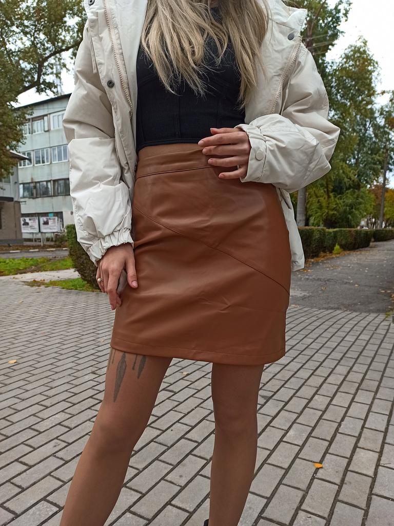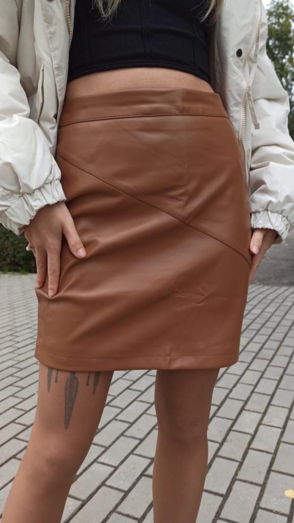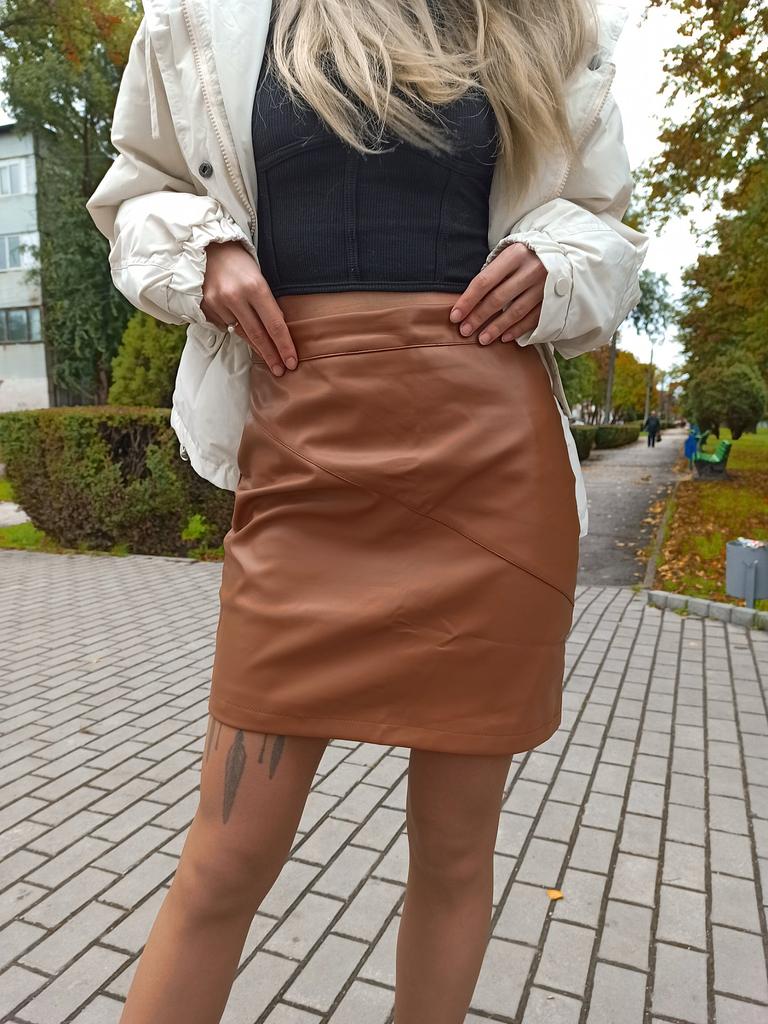 Dámské letní PU kůže Elastická Stretch Jednobarevná A Line Ležérní krátká sukně — koupit online v obchodě na marketplace Joom