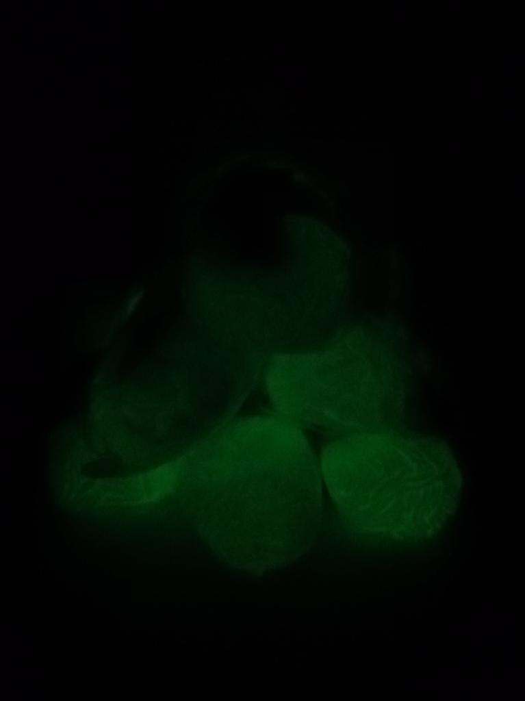 žlutá svítí ve tmě jen nepatrně